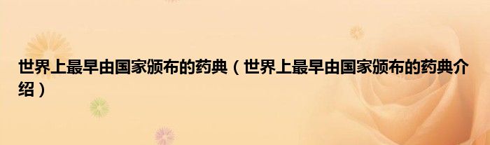 欢迎观看本篇文章,小升来为大家解答以上问题。世界上最早由国家颁布的药典,世界上最早由国家颁布的药典介绍很多人还不知道,现在让我们一起来看看吧!