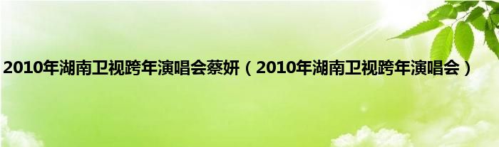 以上就是【2010年湖南卫视跨年演唱会蔡妍,2010年湖南卫视跨年演唱会】相关内容。