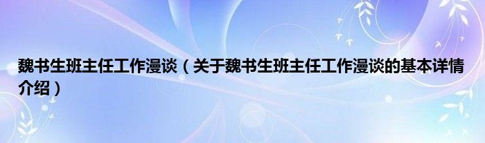 本文关于魏书生班主任工作漫谈的基本详情介绍就讲解完毕,希望对大家有所帮助。