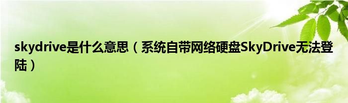大家好,综合小编来为大家讲解下skydrive是什么意思,系统自带网络硬盘SkyDrive无法登陆这个很多人还不知道,现在让我们一起来看看吧!
