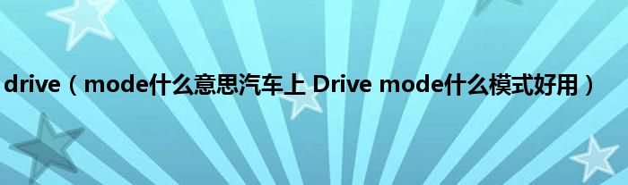 大家好,综合小编来为大家讲解下。drive,mode什么意思汽车上 Drive mode什么模式好用这个很多人还不知道,现在让我们一起来看看吧!
