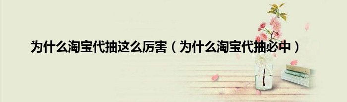 大家好,综合小编来为大家讲解下为什么淘宝代抽这么厉害,为什么淘宝代抽必中这个很多人还不知道,现在让我们一起来看看吧!