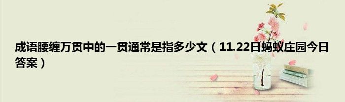 大家好,综合小编来为大家讲解下成语腰缠万贯中的一贯通常是指多少文,11.22日蚂蚁庄园今日答案这个很多人还不知道,现在让我们一起来看看吧!
