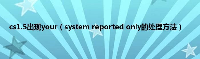 大家好,综合小编来为大家讲解下cs1.5出现your,system reported only的处理方法这个很多人还不知道,现在让我们一起来看看吧!