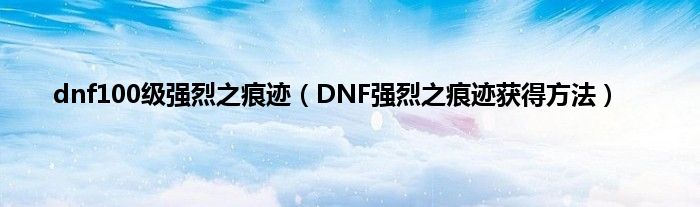 大家好,综合小编来为大家讲解下dnf100级强烈之痕迹,DNF强烈之痕迹获得方法这个很多人还不知道,现在让我们一起来看看吧!