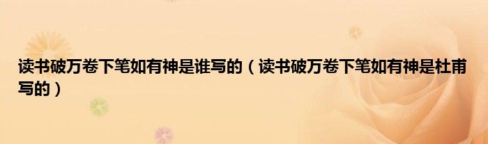 1、 读万卷书,下笔如神,这句话是杜甫写的。