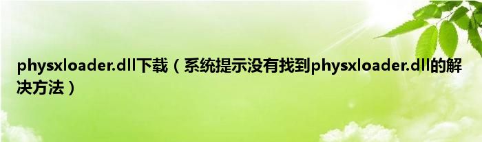 大家好,综合小编来为大家讲解下physxloader.dll下载,系统提示没有找到physxloader.dll的解决方法这个很多人还不知道,现在让我们一起来看看吧!