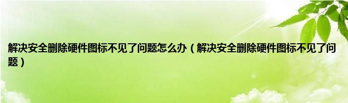 大家好,综合小编来为大家讲解下解决安全删除硬件图标不见了问题怎么办,解决安全删除硬件图标不见了问题这个很多人还不知道,现在让我们一起来看看吧!