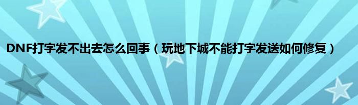 大家好,综合小编来为大家讲解下DNF打字发不出去怎么回事,玩地下城不能打字发送如何修复这个很多人还不知道,现在让我们一起来看看吧!