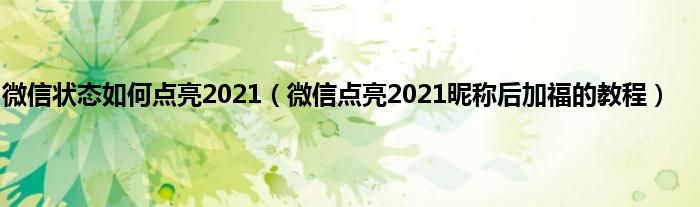 大家好,综合小编来为大家讲解下微信状态如何点亮2021,微信点亮2021昵称后加福的教程这个很多人还不知道,现在让我们一起来看看吧!