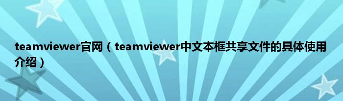大家好,综合小编来为大家讲解下teamviewer官网,teamviewer中文本框共享文件的具体使用介绍这个很多人还不知道,现在让我们一起来看看吧!