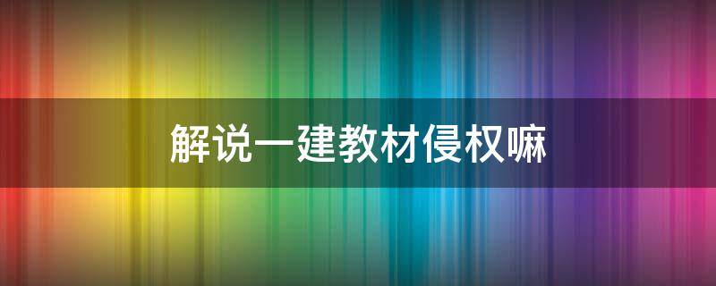 视情况而定。解读书籍内容如果用于商业交易,在没有经过书籍作者同意情况下算侵权。因此如果解说一建教材是用于商业,可能会构成侵权。著作权是指自然人、法人或者其他组织对文学、艺术和科学作品享有的财产权利和精神权利的总称。在我国,著作权即指版权。广义的著作权还包括邻接权,我国《著作权法》称之为与著作权有关的权利。我国采取自动取得原则,当作品创作完成后,只要符合法律上作品的条件,著作权即产生。