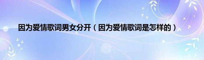 欢迎观看本篇文章,小升来为大家解答以上问题。因为爱情歌词男女分开,因为爱情歌词是怎样的很多人还不知道,现在让我们一起来看看吧!