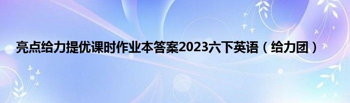 大家好,小问来为大家解答以上问题。亮点给力提优课时作业本答案2023六下英语,给力团这个很多人还不知道,现在让我们一起来看看吧!