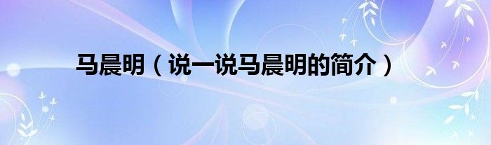 夏弥来为大家解答以下的问题,马晨明,说一说马晨明的简介,现在让我们一起来看看吧!