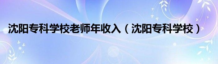 关于沈阳专科学校老师年收入,沈阳专科学校这个很多人还不知道,今天菲菲来为大家解答以上的问题,现在让我们一起来看看吧!