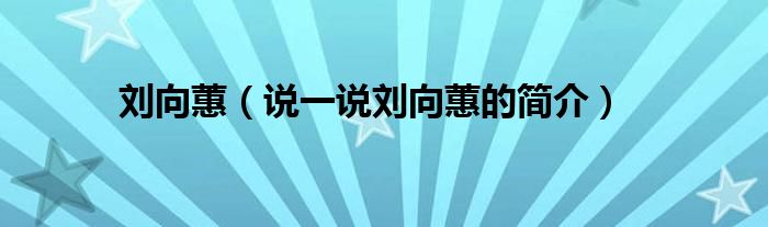夏弥来为大家解答以下的问题,刘向蕙,说一说刘向蕙的简介,现在让我们一起来看看吧!