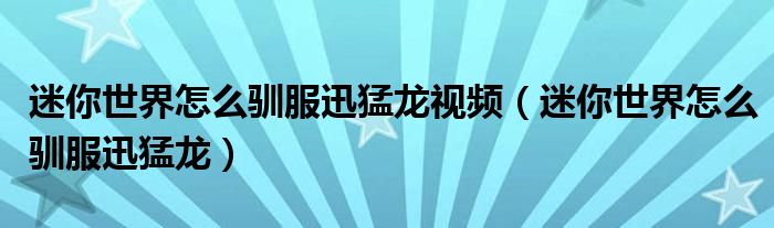 迷你世界怎么驯服迅猛龙视频(迷你世界怎么驯服迅猛龙)