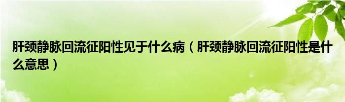大家好,乐天来为大家解答以下的问题,肝颈静脉回流征阳性见于什么病,肝颈静脉回流征阳性是什么意思很多人还不知道,现在让我们一起来看看吧!