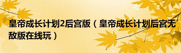 皇帝成长计划2后宫版(皇帝成长计划后宫无敌版在线玩)