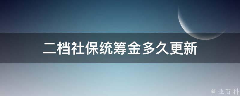 二档社保统筹金通常在每年的1月1日进行更新,一般刷新的时间是一年。但是各地的政策可能会有所不同,所以具体刷新时间需根据当地的相关政策来确定,也可以咨询您所在地区的社保管理机构,以便能够了解当地相关政策和规定。