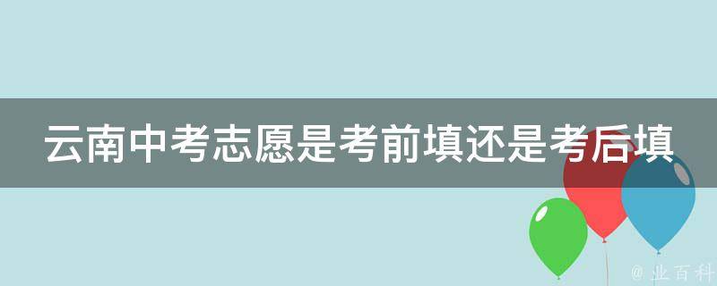 云南中考志愿是考后填,然后实行考后估分填报志愿。考生填报志愿前,市县中招办和学校要派电脑教师对考生进行网上录入志愿信息的技术培训和指导。中考志愿指的是考生填写高中录取志愿单时所填报的志愿,在接受完自己中考考试评分后才可以填写志愿。