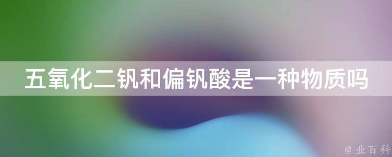 五氧化二钒和偏钒酸不是一种物质。五氧化二钒是一种两性氧化物,为黄色至红色的结晶性粉末,与硫酸作用生成硫酸钒盐,与碱作用生成钒酸盐,并在不同PH值的溶液中形成不同颜色的多钒酸络合物。偏钒酸则是一种无机化合物,白色或淡黄色的晶体,可用作化学试剂、催化剂、催干剂、媒染剂,制造钒酸铵和偏钒酸钾,也用于医疗照相、植物接种及防蚀剂等。