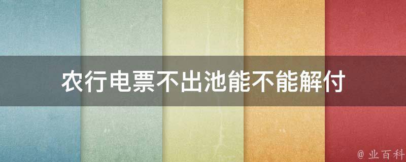 农行电票不出池能不能解付