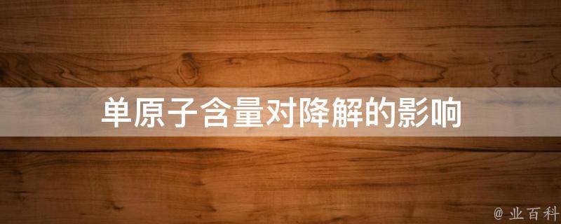 1、反应速率:单原子含量的增加或减少可能影响化学反应的速率。在某些情况下,更高的单原子含量可能会促进降解过程,因为反应物之间的有效碰撞更频繁。