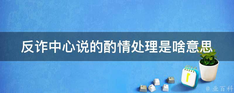 反诈中心所说的酌情处理是指根据具体情况和判断灵活决定如何处理或处理的程度。这种处理方式通常根据实际情况和政策规定,在某些情况下可以对某些事项做出灵活调整或准许一定的自由裁量权。酌情处理的目的是为了更好地适应不同案件和情况,以防止诈骗活动、保护受害者利益,并确保相应的处理方法能够更好地适应个案的特点和问题的严重性。最终的决策可能会综合考虑诸多因素,如案件的证据、相关法律法规、优先次序、预防再次发生等。