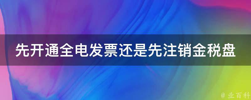 最佳答案先注销金税盘,然后再开通全电发票。先注销金税盘可以确保不再使用旧的发票系统,通过注销金税盘,可以停止使用纸质发票或旧的电子发票系统,避免可能引起混淆或错误的情况发生。开通全电发票需要一定的时间和过程,根据不同的国家或地区的政策,开通全电发票可能需要您注册新的系统、进行培训或进...
