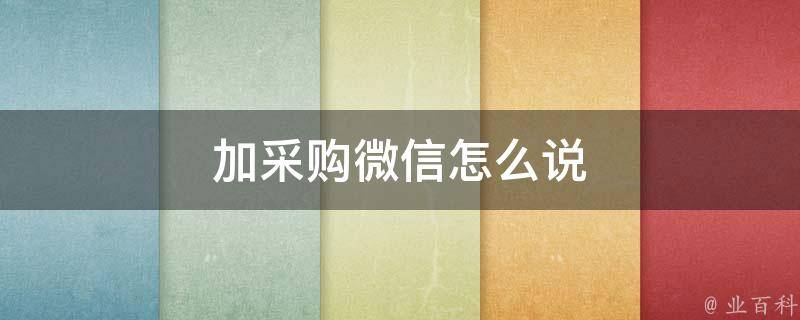 加采购微信可以说请添加我的微信,我是采购部负责人,有一些采购相关事项需要商讨。谢谢。主动进行礼貌问候以此增加客户对自己的良好印象。做一个简单明了的自我介绍以此增加客户对自己的信赖,拉近彼此得距离。跟对方聊聊天,看看他喜欢什么,然后针对他的兴趣爱好去下功夫。