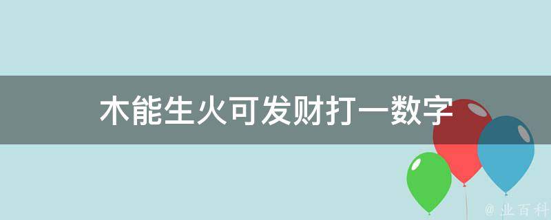 木能生火可发财打一数字是8,因为发的谐音是8。字谜常常以愉快的形式出现,既能娱乐大众,又含有一定的教育、启发或思考价值,通过锻炼思维能力和语言感知能力,提高猜者的智力。字谜是一种古老的文化形式,经过时间沉淀,承载了丰富的文化内涵和智慧,通过猜字谜可以了解和传承的文化知识。