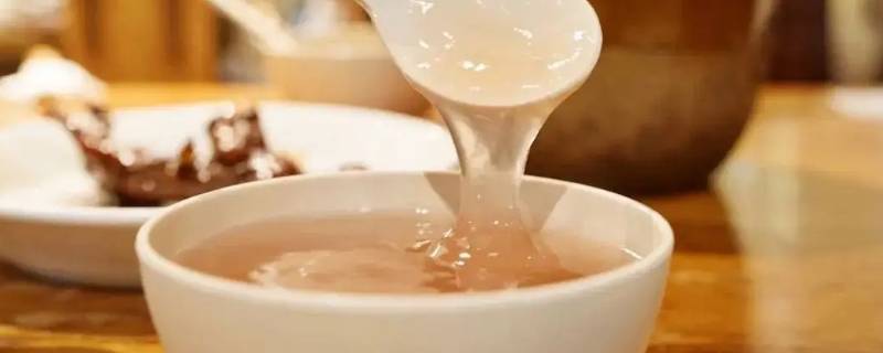 5、将开水和藕粉搅拌至拉丝、有弹性的状态即可食用。