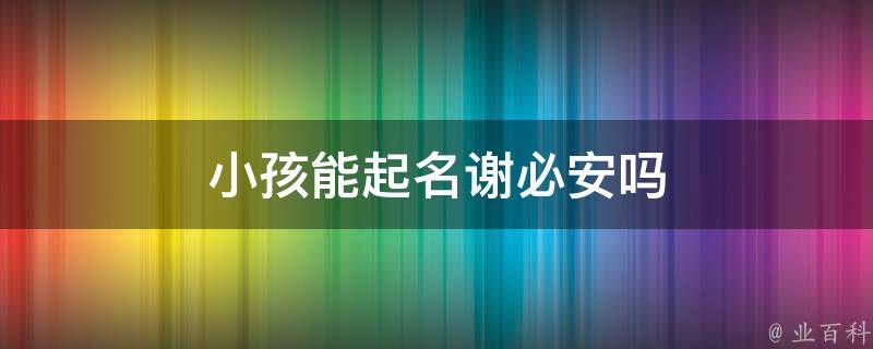 小孩能起名谢必安。谢必安这个名字给人一种温文尔雅的感觉,同时,谢这个姓氏和必安搭配到一起,也别有一番风味,有孩子平平安安、健健康康长大、阖家欢乐、文静、吉祥、幸福、安逸的寓意。既很有气质,又符合父母的期望。