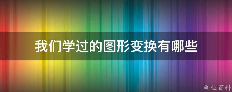 最佳答案我们学过的图形变换有平移、旋转和轴对称。在平面内,将一个图形沿某个方向移动一定的距离,这样的图形运动称为平移,平移不改变图形的形状和大小。在平面内,将一个图形绕一定点沿某个方向转动一个角度,这样的图形运动称为旋转,旋转不改变图形的形状和大小。如果某一个图形沿着某条直线对折后能...
