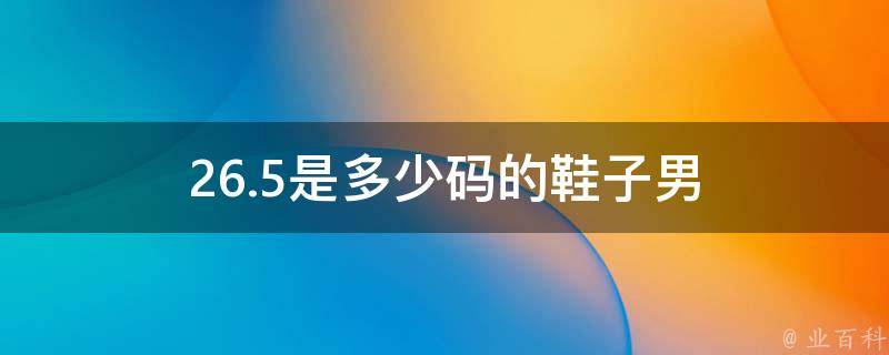 最佳答案26.5是43码的男鞋。26.5对应欧码为43码、美码9码、英码8.5码。26.5表示的是以毫米为单位,265则表示的是以厘米单位,实际上两者指代是一致的,26.5一般是男鞋的尺码。常见鞋码有国际、欧洲、美国和英国标法,国际鞋码表示脚长的毫米数;中国采用毫米数或厘米数为单位来衡量鞋的尺码大小。
