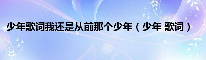 大家好,小联来为大家解答以上的问题。少年歌词我还是从前那个少年,少年 歌词这个很多人还不知道,现在让我们一起来看看吧!