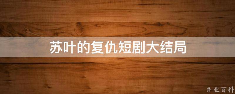 苏叶的复仇短剧还在更新,所以暂时没有大结局。这部短剧讲述了一个女人为了复仇而展开的计划。五年前,女主被妹妹陷害与陌生男子发生关系,而她的妹妹不仅夺走了她的男友,还害死了她的母亲,甚至还想对她施暴。后来她决定用自己的方式来报复妹妹和前男友。