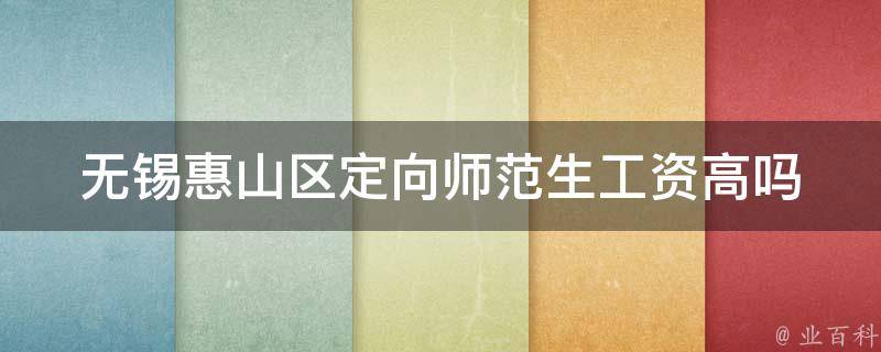 无锡惠山区定向师范生工资较高。江苏省教育厅有规定,定向师范生的工资待遇应当不低于当地同等学历、同等工作年限的教师的平均水平。师范生毕业后的待遇可能会受到多种因素的影响,例如工作地区、工作单位等,因此具体工资待遇可能会存在差异。