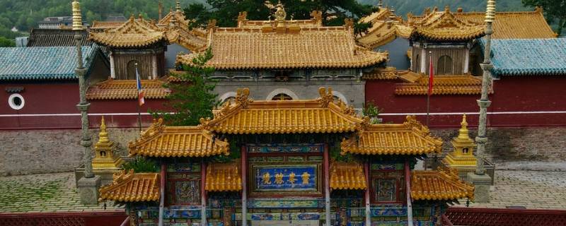 忻州菩萨顶在山西省五台山台怀镇的灵鹫峰上,寺庙整体金碧辉煌、绚丽多彩,是历代皇帝朝拜五台山时的行宫,具有典型的皇家特色。菩萨顶是五台山最大的喇嘛寺院,也是国务院确定的汉族地区佛教全国重点寺院。菩萨顶山门内分布着天王殿、钟鼓楼、菩萨顶、大雄宝殿等主要寺庙建筑,这些建筑的屋顶,都用三彩琉璃瓦覆盖,显得五彩缤纷。