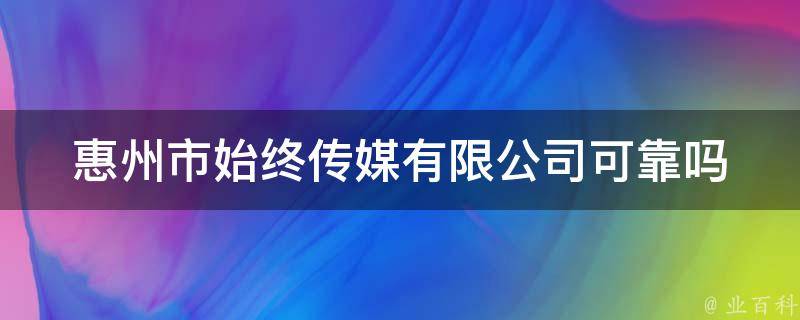 惠州市始终传媒有限公司可靠吗