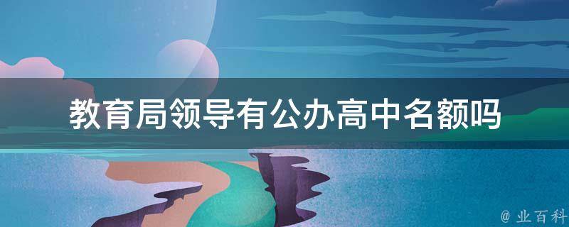 教育局领导没有公办高中名额。教育局领导没有直接管理公办高中,但是会参与制定和执行关于教育的相关政策。公办高中名额一般由当地教育部门根据学校招生计划和录取政策进行分配,具体分配方式和标准需要参考当地相关政策文件和学校招生简章。