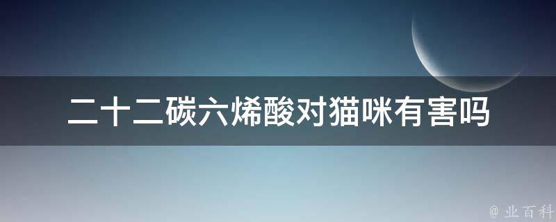 二十二碳六烯酸对猫咪没有危害。二十二碳六烯酸对猫科动物的视觉、生殖健康和免疫系统有重要贡献,所以被添加到猫粮中。猫粮中添加的二十二碳六烯酸是经过科学配比研制出的,可满足猫咪生长所需。