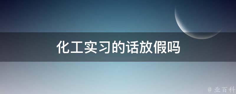 化工实习放假。具体的放假时间可能因公司而异,但通常会根据国家法定假期和公司实际情况进行安排。化工实习是一个实践性的学习过程,通常需要在实际工作环境中进行操作和体验。在实习期间,需要遵守公司的规章制度和安全操作规程,认真学习并完成公司安排的任务。