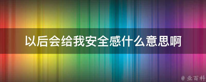 以后会给我安全感意思是让你感到安全,不用担心在一起的时候不舒服,安全感来自于心理和生理,心理满足来自欲望的满足,比如你渴望浪漫的约会,他会买花;你渴望稳定的家庭,他会买一套房子,生理满足来自于男人的保护欲,就像小时候你的满足来自于父母一样,父母可以保护你、可以满足你,长大了换了个人来替代你的父母。