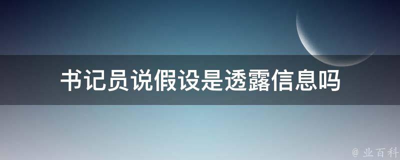 书记员说假设不是透露信息。书记员是人民法院和人民检察司法工作人员之一,是和法警一样,也是法院后勤保障工作中不可或缺的重要组成部分。在刑事、民事、行政等诉讼活动中,书记员的工作职责是承担各项工作,如记录、复制与案件有关的材料,草拟庭审提纲等,其职位一般较固定。