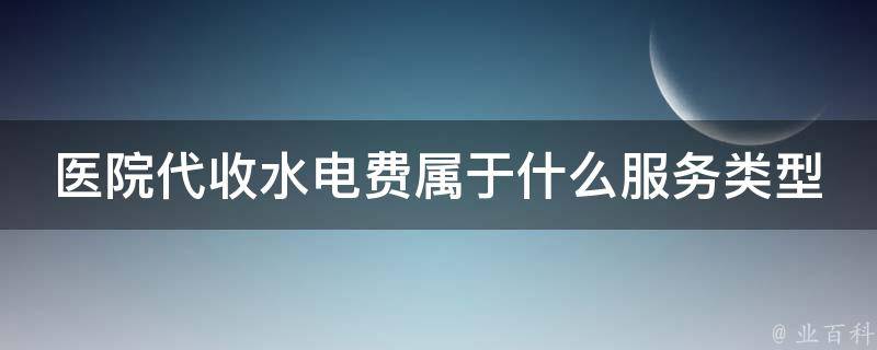 医院代收水电费属于现代服务类。代收水电费的单位需向业主开具增值税发票,若收水电费的单位为增值税一般纳税人,业户要求开具增值税专用发票的,收水电费的单位应向业主开具增值税专用发票,同时支付给电业局的电费增值税也可抵扣。