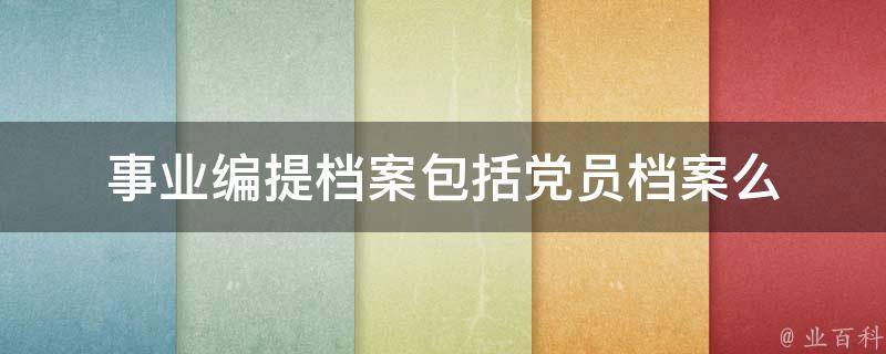 事业编提档案包括党员档案。因为党员档案是个人档案的一部分,通常会随着个人档案一起调动。在调动时,调入单位会通过调阅本人档案的方式了解其的基本情况,包括党员档案。事业编制是指为国家创造或改善生产条件、增进社会福利,满足人民文化、教育、卫生等需要,其经费一般由国家事业费开支的单位所使用的人员编制。