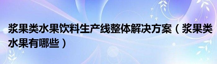 大家好,小虎来为大家讲解下。浆果类水果饮料生产线整体解决方案,浆果类水果有哪些很多人还不知道,现在让我们一起来看看吧!